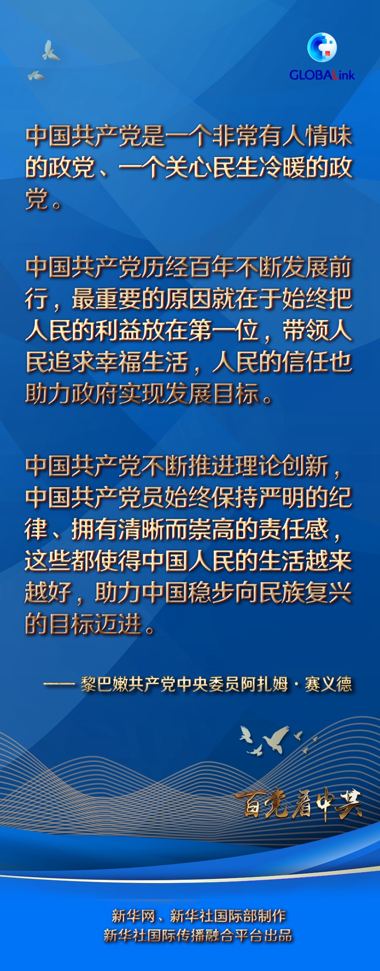 在賽義德看來,中國(guó)共產(chǎn)黨歷經(jīng)百年不斷發(fā)展前行,最重要的原因就在于始終把人民的利益放在第一位,帶領(lǐng)人民追求幸福生活,人民的信任也助力政府實(shí)現(xiàn)發(fā)展目標(biāo)。