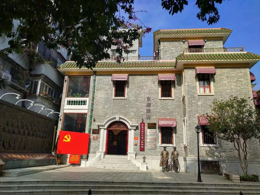 “東湖旅店”,位于惠州市區(qū),這是一棟民國(guó)時(shí)期建的三層青磚樓房。抗日戰(zhàn)爭(zhēng)時(shí)期,這家旅店作為中共惠陽(yáng)縣委設(shè)立的秘密交通站,見(jiàn)證了一場(chǎng)驚心動(dòng)魄的大營(yíng)救,100多位著名愛(ài)國(guó)民主人士和文化名人通過(guò)這里得以脫險(xiǎn)。如今,這里被辟為“營(yíng)救中國(guó)文化名人陳列館”,是粵港澳大灣區(qū)的一個(gè)愛(ài)國(guó)主義教育網(wǎng)紅基地。