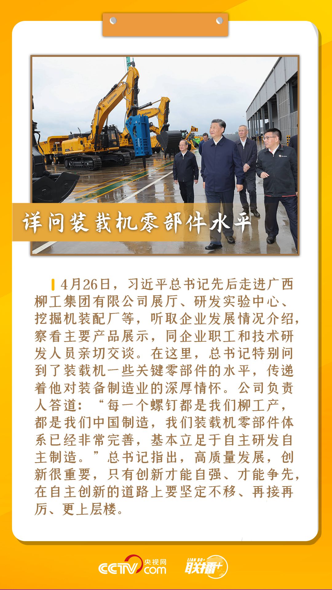 從到紅軍長征湘江戰(zhàn)役紀(jì)念園向湘江戰(zhàn)役紅軍烈士敬獻(xiàn)花籃、參觀紀(jì)念館到走進(jìn)毛竹山村葡萄種植園察看葡萄長勢,再到走進(jìn)廣西柳工集團(tuán)有限公司展廳、研發(fā)實(shí)驗(yàn)中心等聽取企業(yè)發(fā)展情況介紹……總書記行程滿滿,步履匆匆,留下很多令人印象深刻的話語與瞬間。