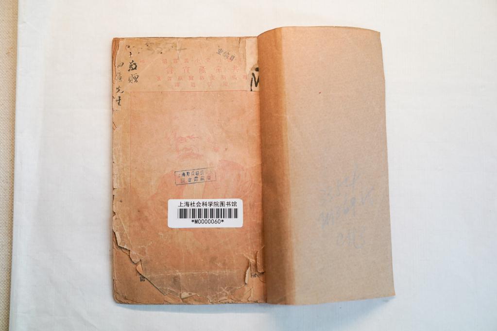 “發(fā)現(xiàn)這本《共產(chǎn)黨宣言》時(shí),我們都很興奮!鄙虾I缈圃簣D書(shū)館館長(zhǎng)錢(qián)運(yùn)春說(shuō),去年“七一”前,圖書(shū)館整理館內(nèi)各歷史時(shí)期馬克思主義在中國(guó)傳播的相關(guān)出版物,在此過(guò)程中發(fā)現(xiàn)了這本《共產(chǎn)黨宣言》。發(fā)現(xiàn)時(shí),該書(shū)封面外覆有一層牛皮紙,封面左上角寫(xiě)有“敬贈(zèng)岫廬先生”,中間有“上海財(cái)政經(jīng)濟(jì)學(xué)院圖書(shū)館藏書(shū)”藍(lán)色印章,扉頁(yè)下方有“岫廬藏書(shū)”印章。圖書(shū)館研究人員根據(jù)書(shū)上印章、字跡等信息推斷,該藏本系商務(wù)印書(shū)館原總經(jīng)理王云五(號(hào)岫廬)舊藏,后捐贈(zèng)給立信會(huì)計(jì)?茖W(xué)校上海新校圖書(shū)館,于20世紀(jì)50年代院系調(diào)整期間被收入上海社科院圖書(shū)館。