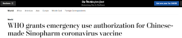 世界衛(wèi)生組織批準(zhǔn)了中國(guó)新冠疫苗用于緊急情況。這讓人們?nèi)计鹆讼M? 在關(guān)鍵時(shí)刻,會(huì)有更多的民眾——尤其是發(fā)展中國(guó)家的民眾——能夠接種新冠疫苗。