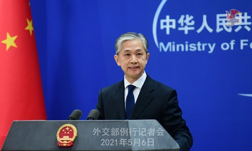 △中國(guó)外交部發(fā)言人汪文斌在例行記者會(huì)上發(fā)言