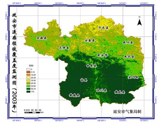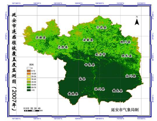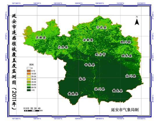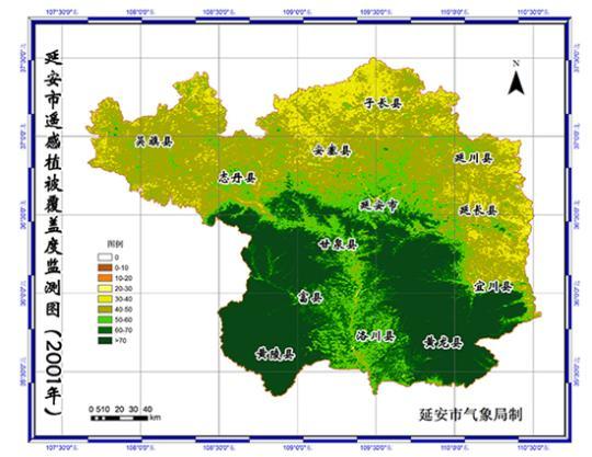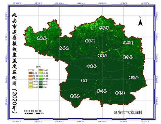 2001-2020年陜西省延安市遙感植被覆蓋度監(jiān)測(cè)圖。延安市退耕還林工程管理辦公室供圖