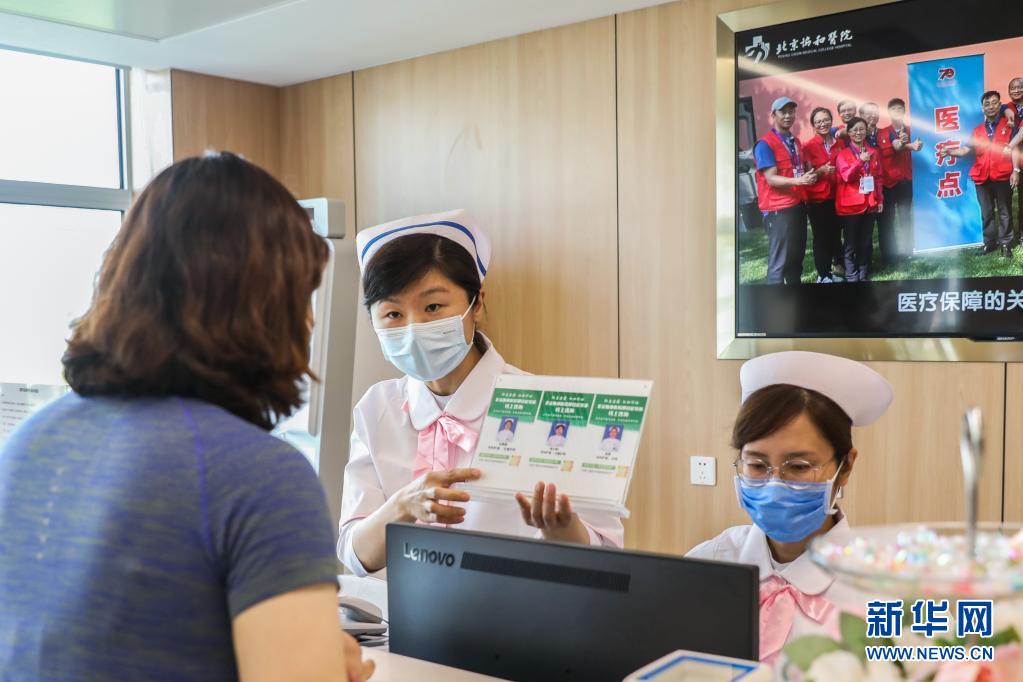 5月11日,北京協(xié)和醫(yī)院南丁格爾護理志愿服務(wù)隊成員為一名活動參加者提供分診咨詢。