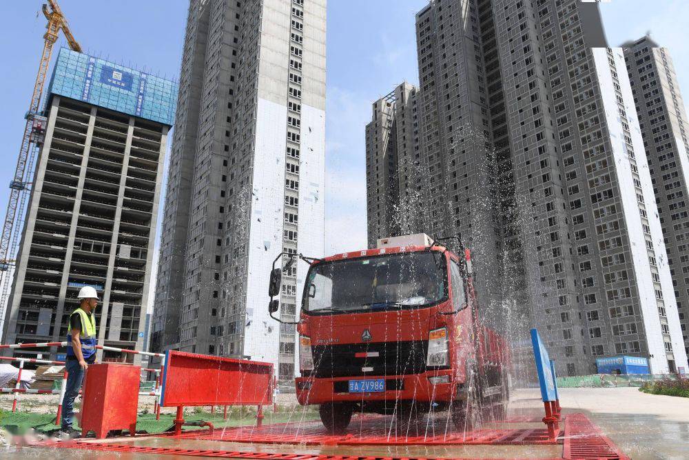 ↑ 在甘肅省蘭州市中建三局一處建設(shè)工地上,感應(yīng)式的洗車臺(tái)利用循環(huán)再生水沖洗車輛,并對(duì)污水再次回收利用(5月12日攝)。