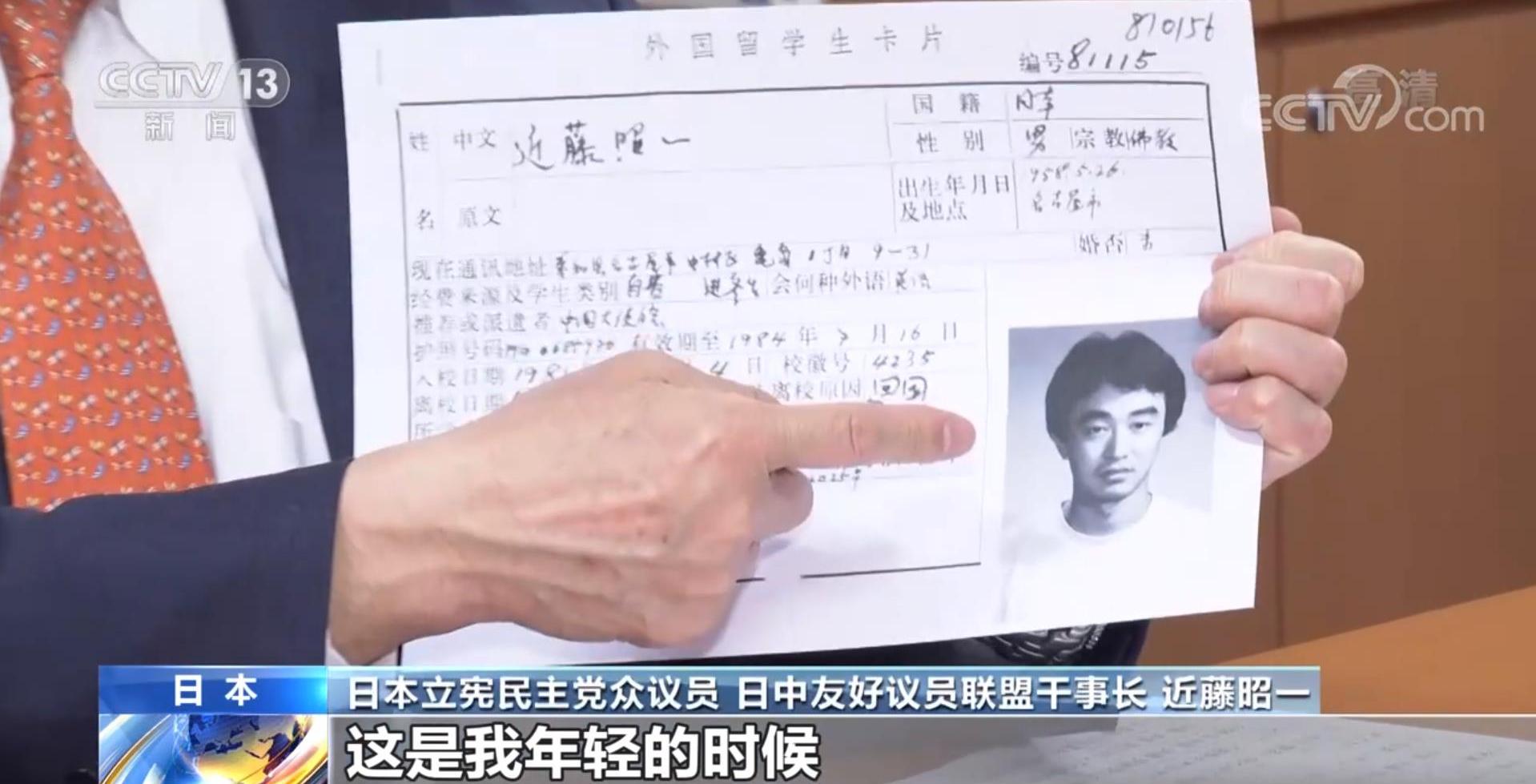 日本立憲民主黨眾議員、日中友好議員聯(lián)盟干事長 近藤昭一:這是我年輕的時(shí)候,這是在我畢業(yè)多年之后去參加校友會(huì)的時(shí)候找到的。我就讀的是北京語言學(xué)院,現(xiàn)在已經(jīng)是北京語言大學(xué)了,我參加北京語言大學(xué)校友會(huì)的時(shí)候,提到我當(dāng)時(shí)留學(xué)時(shí)候的學(xué)生卡還被保存著,所以復(fù)印給我留念。我留學(xué)的時(shí)候就認(rèn)識(shí)到中國是擁有悠久歷史的文明古國,但是我1981年開始在中國留學(xué)的時(shí)候,當(dāng)時(shí)有車的人很少,現(xiàn)在很多中國人都開著自己的汽車,這些年來中國的經(jīng)濟(jì)發(fā)展令人印象深刻,人民的生活變得富足。