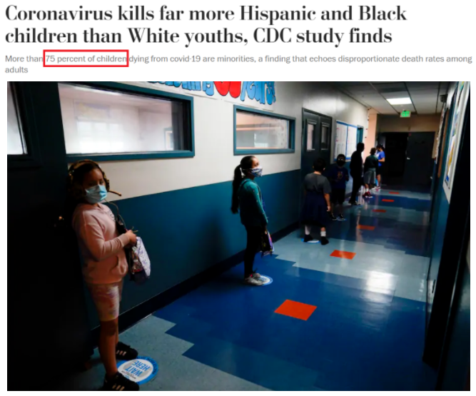 研究還發(fā)現(xiàn),新冠肺炎對少數(shù)族裔兒童和青少年的影響尤為嚴重,美國死于新冠肺炎的未成年人中有75%以上是少數(shù)族裔。