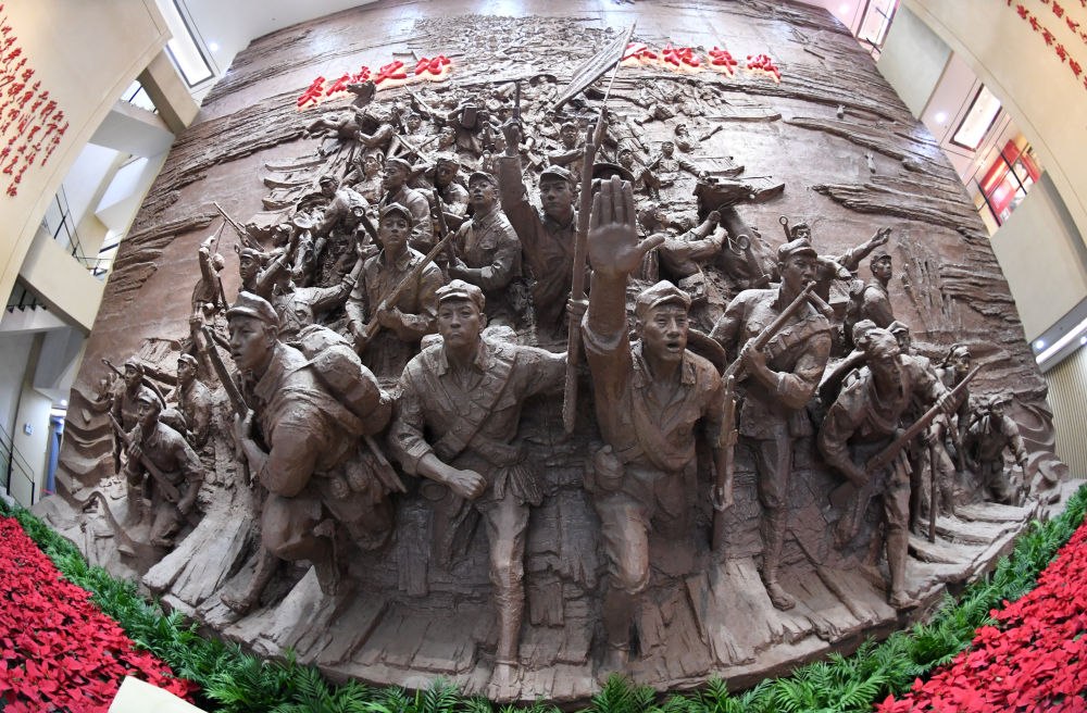 廣西桂林全州縣紅軍長(zhǎng)征湘江戰(zhàn)役紀(jì)念館內(nèi)的雕塑(4月26日攝)。新華社記者陸波岸攝