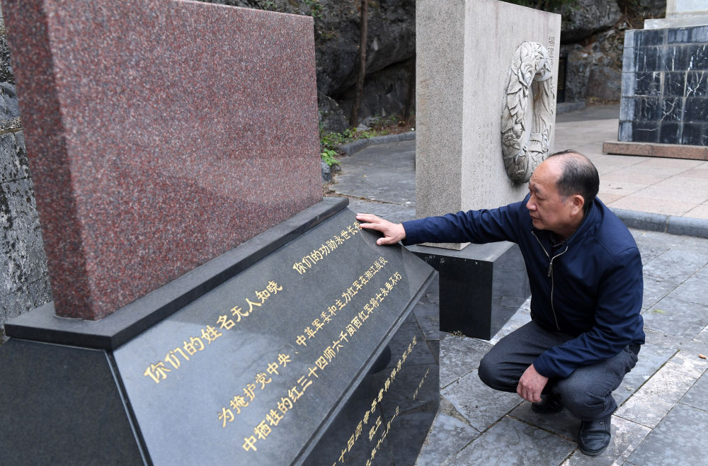在廣西灌陽(yáng)縣革命烈士陵園,灌陽(yáng)縣黨史專家文東柏瞻仰無(wú)名烈士紀(jì)念碑(2月2日攝)。新華社記者陸波岸攝