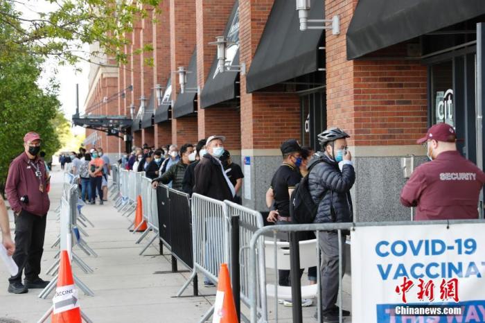 資料圖:當(dāng)?shù)貢r(shí)間5月12日,美國(guó)紐約大都會(huì)棒球隊(duì)主場(chǎng)花旗球場(chǎng)新冠疫苗接種點(diǎn),民眾排隊(duì)接種疫苗。 中新社記者 廖攀 攝