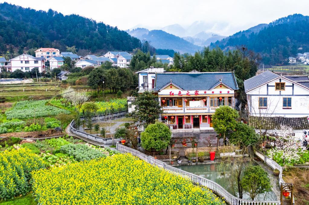 遵義市楓香鎮(zhèn)花茂村村民王治強(qiáng)經(jīng)營(yíng)的“紅色之家”農(nóng)家樂(lè)(2020年2月28日攝,無(wú)人機(jī)照片)。新華社記者陶亮攝
