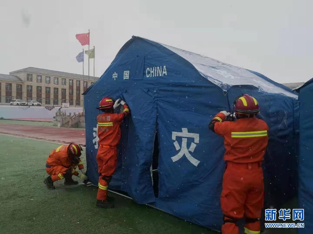 5月22日,在青海省果洛藏族自治州瑪多縣城,救援人員在搭建帳篷。新華社發(fā)