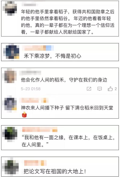 昨天(22日),這位“雜交水稻之父”、中國(guó)工程院院士、“共和國(guó)勛章”獲得者在湖南長(zhǎng)沙逝世,享年91歲。一名網(wǎng)友在微博上寫(xiě)下“有些人,偉大到我們以為他們沒(méi)有生老病死”戳中全國(guó)網(wǎng)友的淚點(diǎn)。