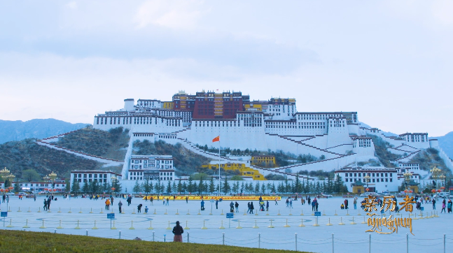 降邊嘉措:解放軍是1951年10月到的拉薩。布達(dá)拉宮前面是個(gè)草坪,傍晚了以后呢,解放軍隨軍記者叫林安波,他說(shuō)你還不回去啊?把羊趕回去,然后來(lái)來(lái)我給你照個(gè)相。