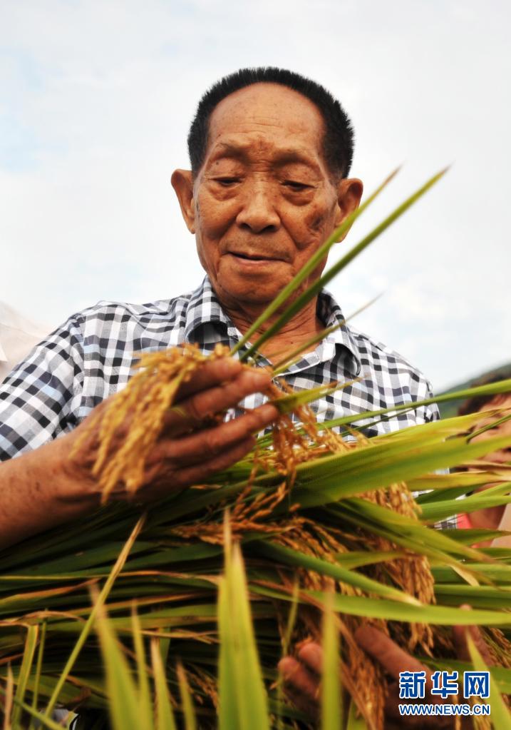 2013年8月19日,袁隆平院士在廣西桂林市灌陽縣黃關(guān)鎮(zhèn)聯(lián)德村袁隆平超級(jí)稻第四期攻關(guān)示范片查看水稻生長情況。新華社記者 陸波岸 攝