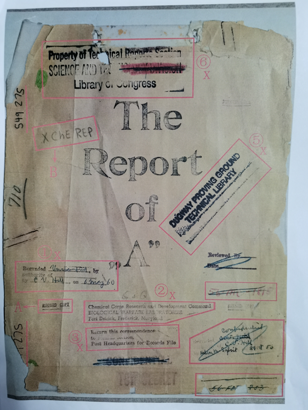 731部隊進行人體實驗的炭疽菌實驗報告封面圖,上面有德特里克堡基地的字樣。新華社記者 王建 攝