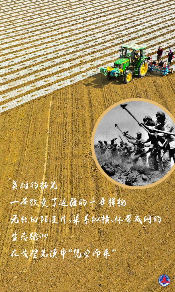 英雄的部隊,就此扎根大漠,整編為新疆生產(chǎn)建設兵團農(nóng)一師(后更名為第一師)。而英雄的拓荒,一舉改變了邊疆的千年樣貌。無數(shù)田陌連片、渠系縱橫、林帶成網(wǎng)的生態(tài)綠洲,在戈壁荒漠中“憑空而來”。