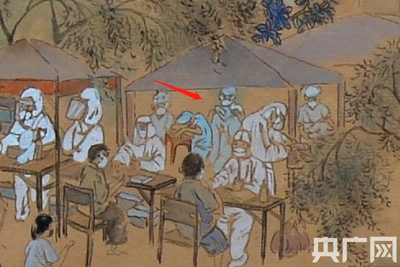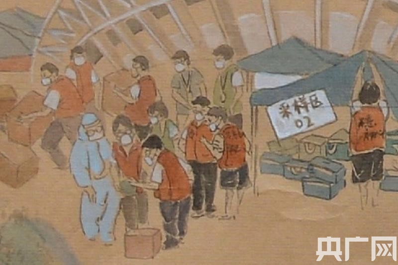 值得一提的是,作者還將很多現(xiàn)實中的動人場景也融入其中。比如,多位醫(yī)務人員因為太過疲憊,或趴在椅子上休息,或蜷縮在桌子旁;比如,黨員志愿者嚴守一線,維護現(xiàn)場秩序……