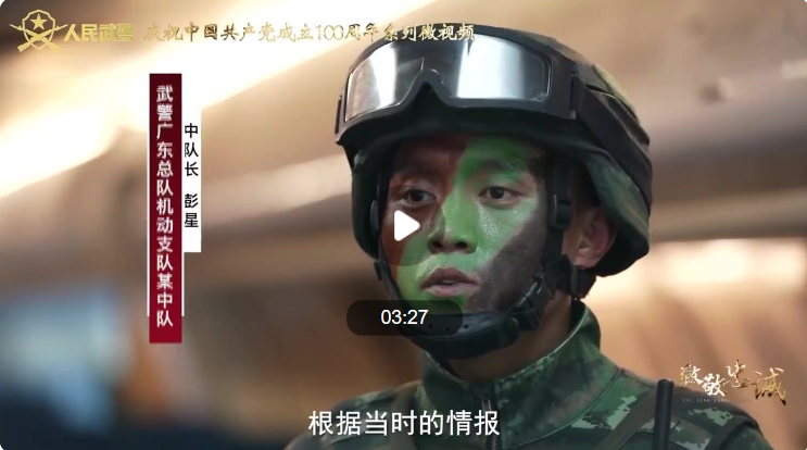 為慶祝中國共產(chǎn)黨成立100周年,自2021年6月7日起,人民武警新媒體矩陣連續(xù)推出由武警部隊政治工作部宣傳文化中心制作的40集系列微視頻《致敬忠誠》。本期為您介紹武警廣東總隊機動支隊某中隊中隊長彭星。
