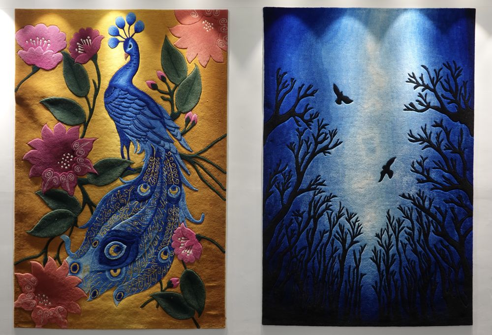 藏毯現(xiàn)在也被設(shè)計(jì)成大面積背景墻或裝飾畫,既可用于酒店裝飾,也可作為家居點(diǎn)綴,擁有獨(dú)特的市場前景。