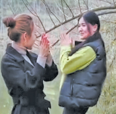 馬覺(jué)娜(右)和村干部共同錄制短視頻。
