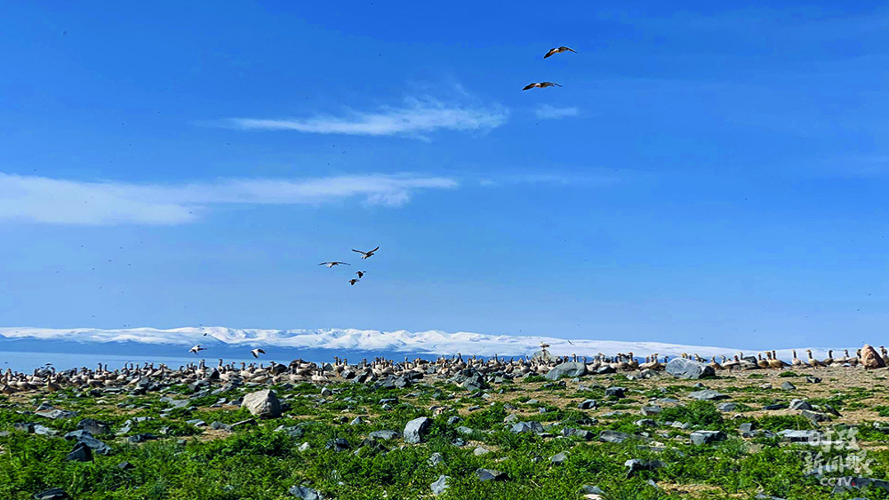 △數(shù)千只斑頭雁在青海湖邊筑巢。(圖/視覺中國)