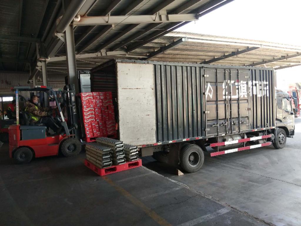 在蘭州紅旗物流有限公司倉(cāng)儲(chǔ)基地,車輛正在裝運(yùn)貨物。(受訪者供圖)