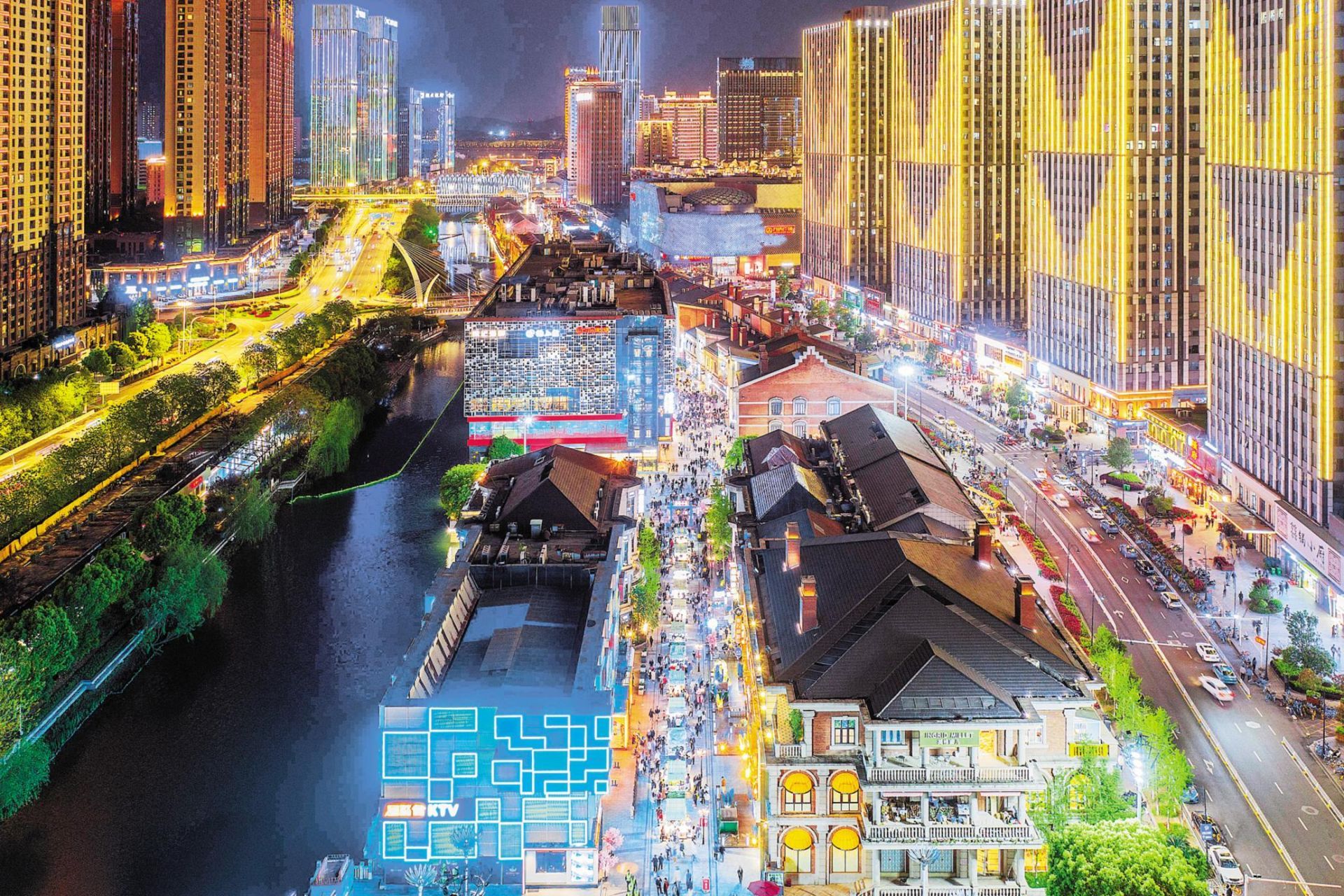 2021年4月4日夜,漢街人頭攢動,市民游客人流如潮,武漢的商業(yè)旅游快速恢復(fù)。 湖北日報全媒記者 梅濤 攝