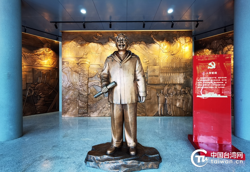 李保國先進(jìn)事跡展覽館前廳安放的李保國同志的銅像。(中國臺(tái)灣網(wǎng) 張亞靜 攝)