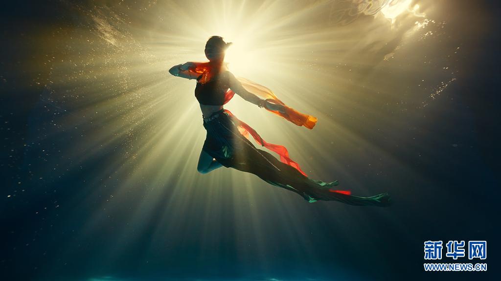 演員演繹水下飛天舞蹈《洛神水賦》(視頻截圖)。