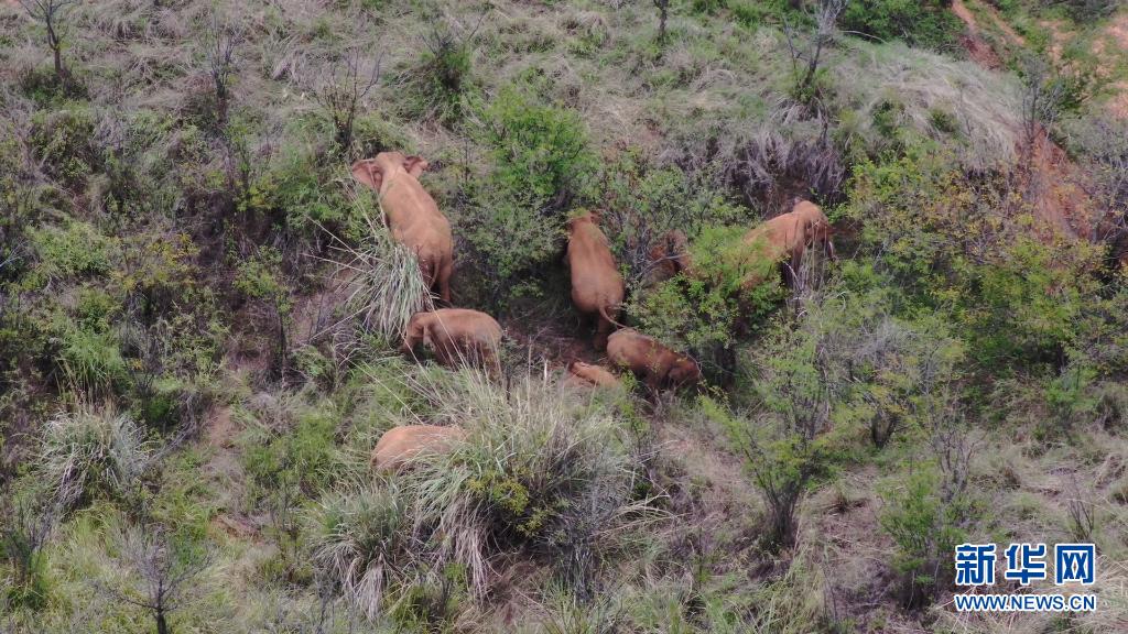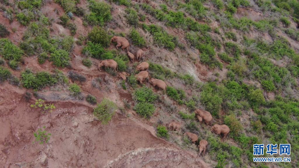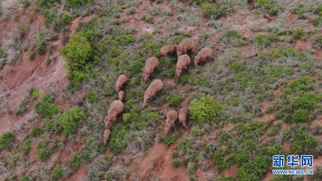 6月18日在玉溪市峨山縣境內(nèi)拍攝的象群(無人機視頻截圖)。新華社發(fā)