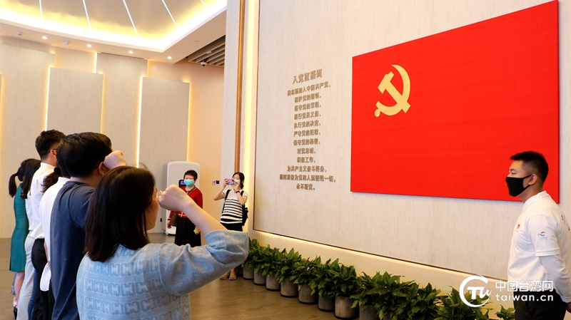 外地參訪團(tuán)在紀(jì)念館內(nèi)重溫入黨誓詞。(中國(guó)臺(tái)灣網(wǎng) 普燕 攝)
