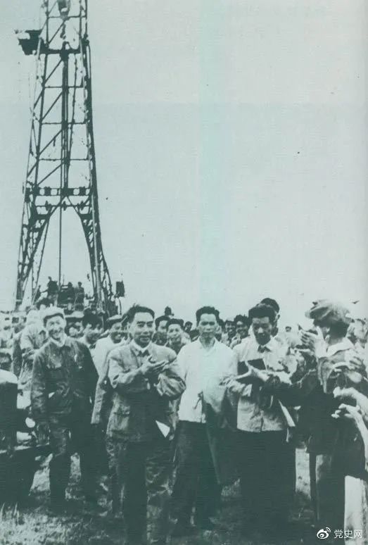 1962年6月,周恩來到大慶視察。這是在1202鉆井隊現(xiàn)場參觀。