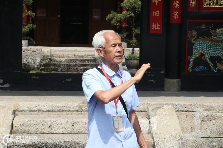 今年82歲的義務(wù)講解員林興陣向采訪團(tuán)講述革命故事。(中國(guó)臺(tái)灣網(wǎng) 尹賽楠 攝)