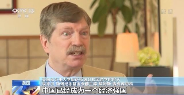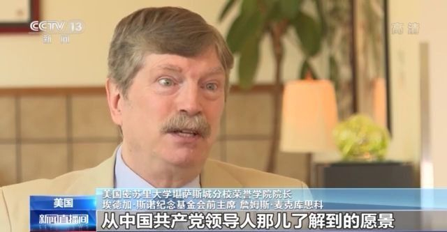 美國(guó)密蘇里大學(xué)堪薩斯城分校榮譽(yù)學(xué)院院長(zhǎng) 埃德加·斯諾紀(jì)念基金會(huì)前主席 詹姆斯·麥克庫(kù)思科:在埃德加·斯諾訪問(wèn)中國(guó)后的這85年里,中國(guó)在經(jīng)濟(jì)、社會(huì)和文化方面都取得了長(zhǎng)足發(fā)展,中國(guó)已經(jīng)成為一個(gè)經(jīng)濟(jì)強(qiáng)國(guó),世界上從未見(jiàn)過(guò)這樣的國(guó)家。中國(guó)有了高速公路,有了高鐵線路,中國(guó)的通信和交通條件極大改善,人民生活水平也極大提高。