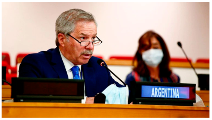 △阿根廷外長費利佩·索拉當?shù)貢r間24日在聯(lián)大非殖特委會會議上做關(guān)于馬島議程的新聞簡報