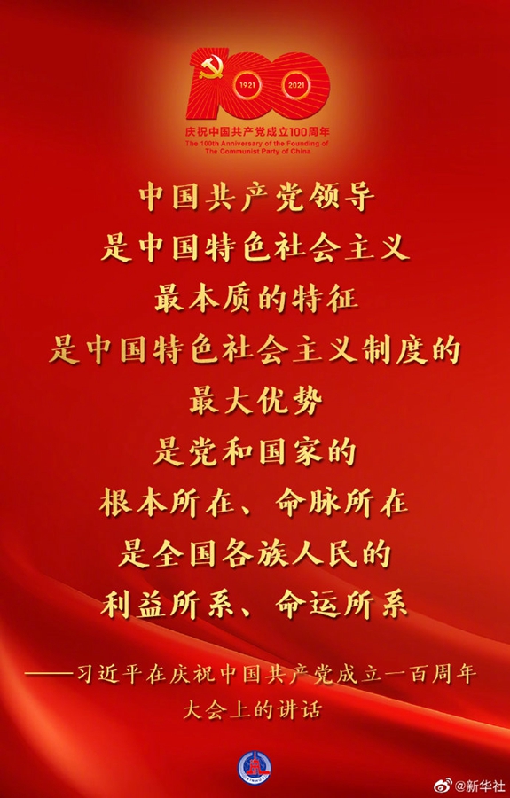 7月1日,慶祝中國共產(chǎn)黨成立一百周年大會在北京隆重舉行,習(xí)近平總書記出席并發(fā)表重要講話。看要點↓