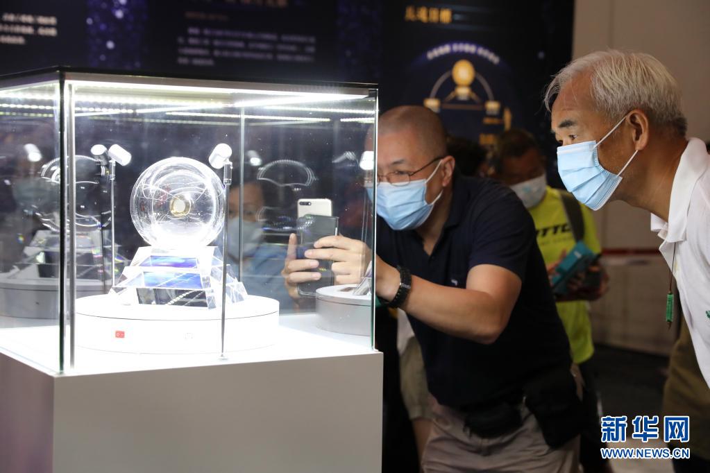 7月2日,觀眾在參觀月壤。新華社記者 吳曉初 攝