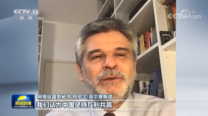 阿根廷國務(wù)秘書 丹尼爾·菲爾穆斯塔:我們認(rèn)為中國堅(jiān)持互利共贏,在世界舞臺上發(fā)揮著重要作用,阿根廷也支持多邊主義,反對霸權(quán),中國和其他反對霸權(quán)主義國家共同努力,也讓更多發(fā)展中國家有機(jī)會(huì)發(fā)出自己的聲音。