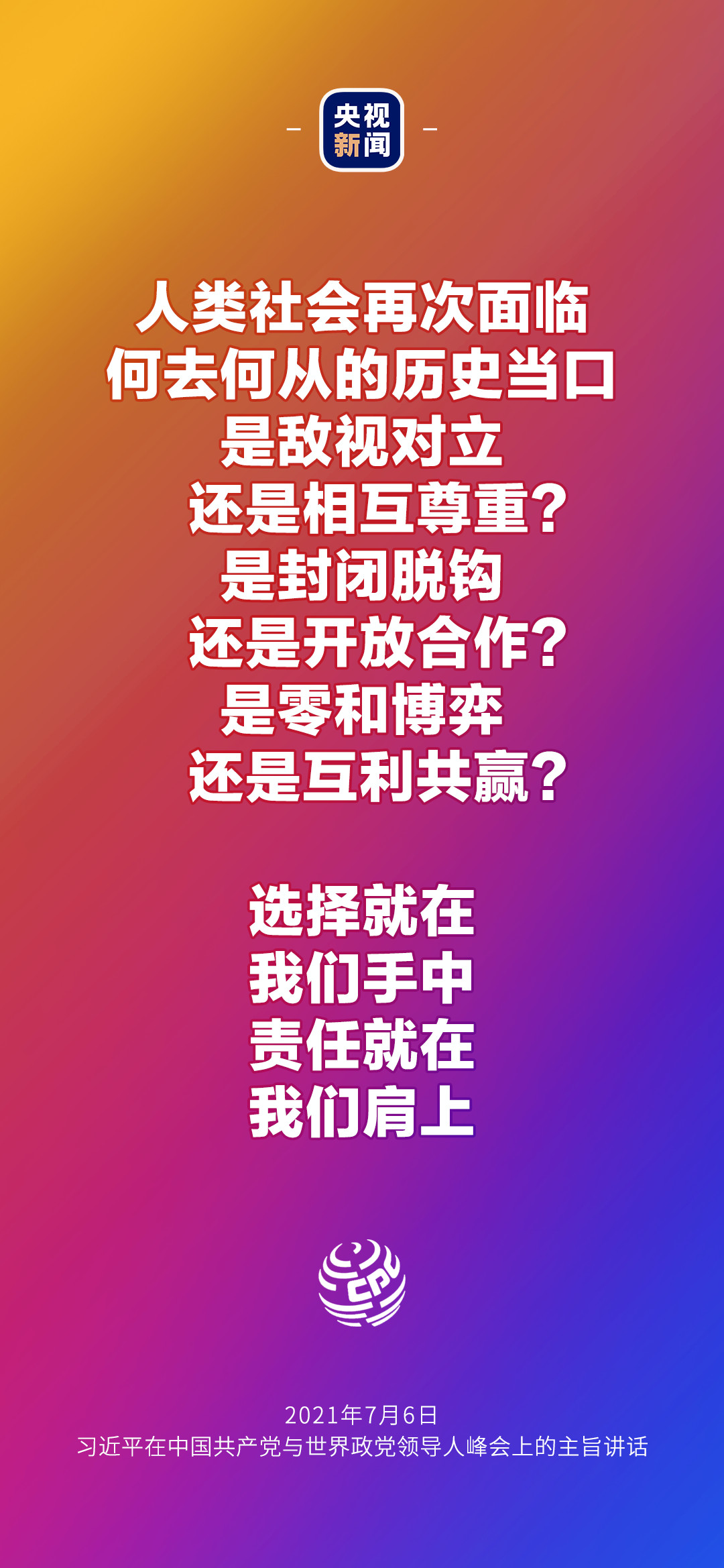 6日晚,中國共產(chǎn)黨與世界政黨領(lǐng)導(dǎo)人峰會以視頻連線方式舉行,160多個國家的500多個政黨和政治組織的領(lǐng)導(dǎo)人以及逾萬名政黨代表出席了會議。中共中央總書記、國家主席習(xí)近平在北京出席會議并發(fā)表主旨講話,講話向世界傳遞了哪些中國聲音?看梳理→