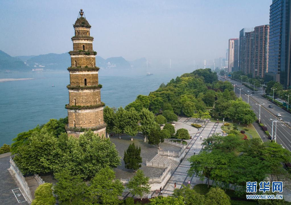 湖北省宜昌市江灘公園一角(2018年4月30日攝,無(wú)人機(jī)照片)。新華社記者 肖藝九 攝