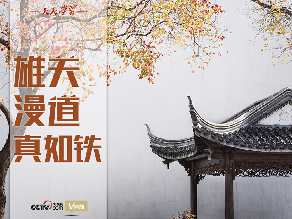 “雄關(guān)漫道真如鐵”“人間正道是滄!狈謩e出自毛澤東的《憶秦娥·婁山關(guān)》和《七律·人民解放軍占領(lǐng)南京》,“長風(fēng)破浪會有時”出自李白的樂府詩《行路難》。