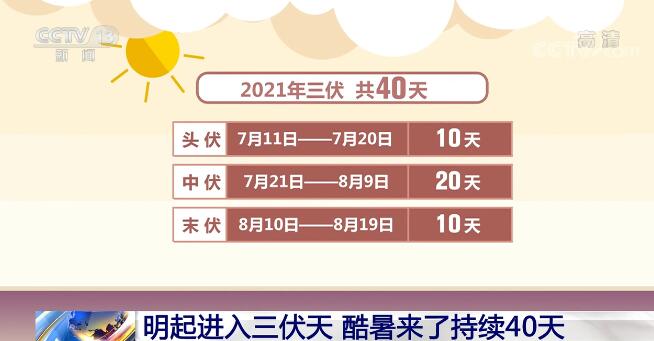 央視網(wǎng)消息:明天,也就是7月11日,我們即將進(jìn)入一年中最熱的一段日子——三伏天。今年的三伏天又是“超長待機(jī)”——40天。