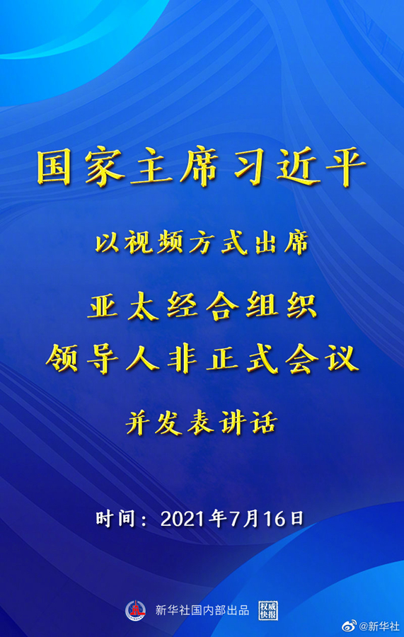 7月16日晚,國家主席習近平應邀在北京以視頻方式出席亞太經(jīng)合組織領導人非正式會議并發(fā)表講話。