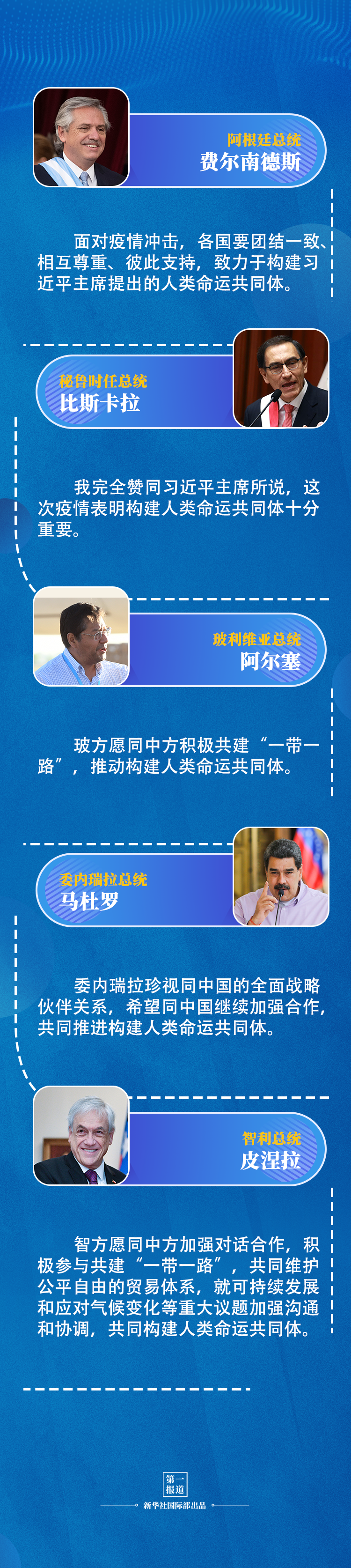 尤其在新冠疫情期間,習(xí)近平主席同拉美多國領(lǐng)導(dǎo)人互致函電,引領(lǐng)中拉同心抗疫、共謀發(fā)展,以實(shí)際行動生動詮釋“天涯若比鄰”,豐富了中拉命運(yùn)共同體理念內(nèi)涵。