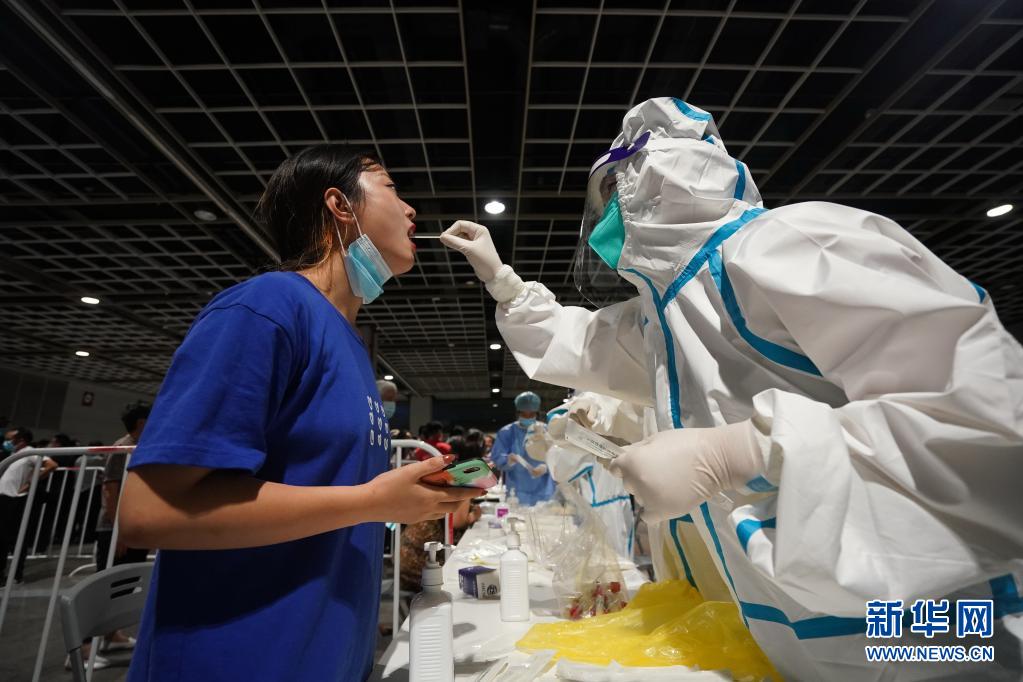 7月21日晚,在南京市玄武區(qū)一處檢測點,醫(yī)務人員在為市民進行核酸檢測取樣。新華社記者 季春鵬 攝