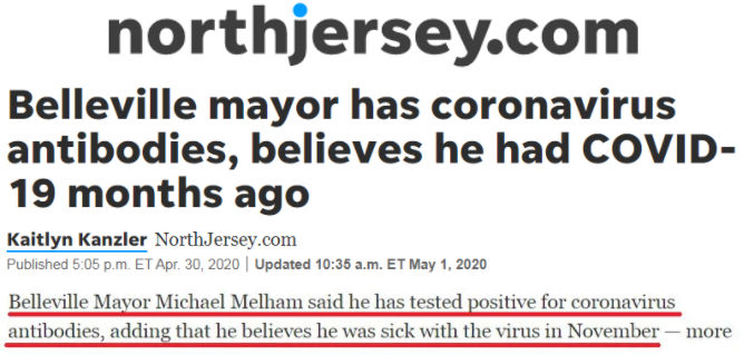 去年4月底,美國媒體突然報道了一則“頭條新聞”:新澤西州貝爾維爾市市長邁克爾·梅爾哈姆確信自己在2019年11月就感染了新冠肺炎。果真如此的話,這要比美國2020年1月下旬“官宣”首例確診病例早了大約兩個月。