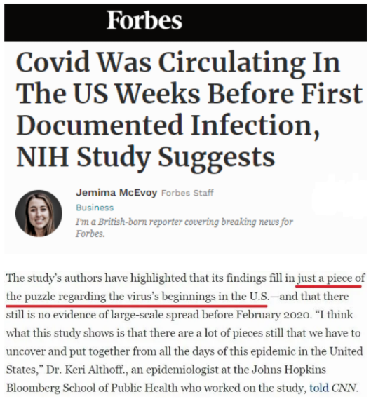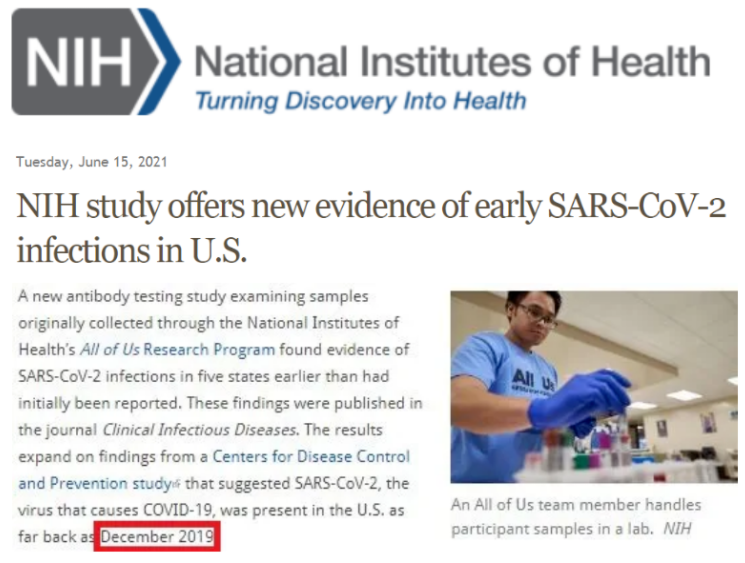 就在上個月15日,美國國立衛(wèi)生研究院(NIH)最新公布的研究結果支持了CDC的研究發(fā)現(xiàn):新冠病毒早在2019年12月就已在美國傳播。