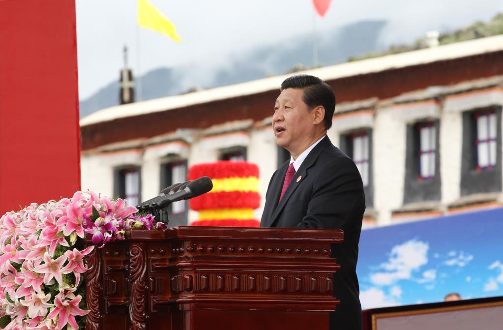 2011年7月19日,西藏和平解放60周年慶祝大會在拉薩舉行。時任中共中央政治局常委、國家副主席、中央軍委副主席、中央代表團團長習近平在慶祝大會上講話。新華社記者 丁林 攝
