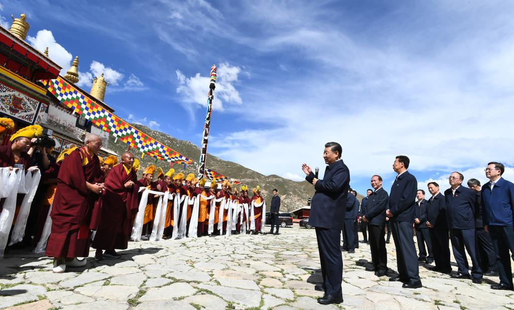 7月22日下午,習(xí)近平在位于拉薩西郊的哲蚌寺同僧人親切交流。新華社記者 謝環(huán)馳 攝